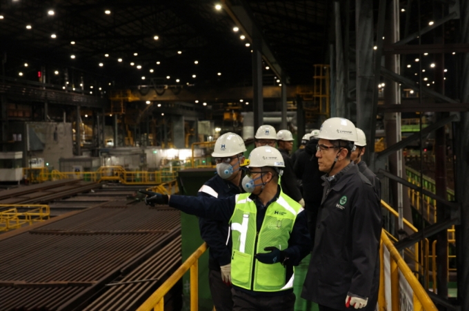 ▲지난 12월 4일 이강덕 포항시장이 현대제철 1공장을 방문해 현장을 둘러보고 있다./사진제공=포항시-최근 포항의 주력산업인 철강이 전례없는 위기를 맞고 있다. 이를 극복하기 위한 노력을 설명하자면